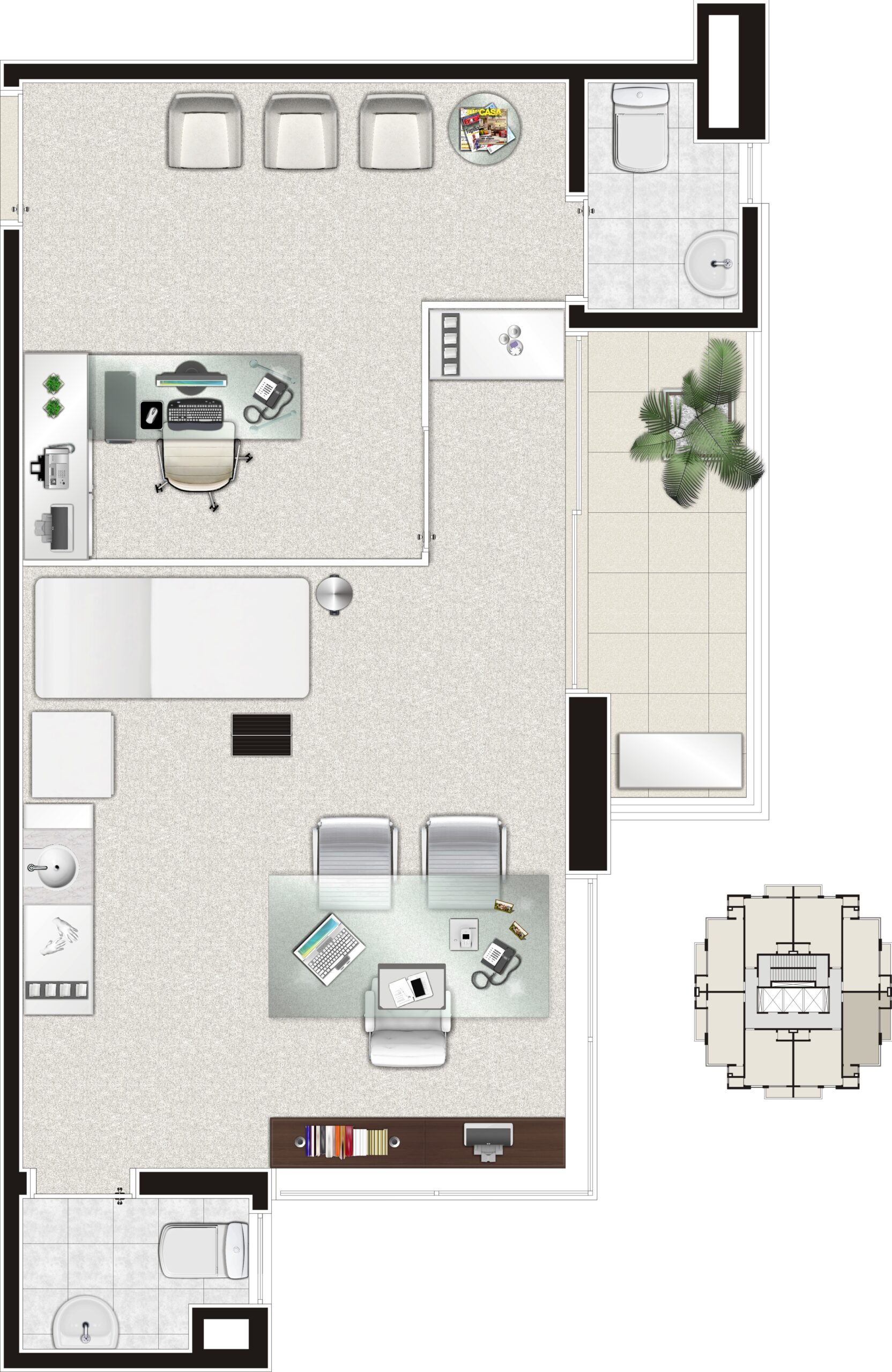 Projetado para atender às novas dinâmicas de trabalho, este é o ambiente que oferece a imagem profissional que você precisa com o conforto que você deseja. Cada detalhe foi pensado para otimizar sua rotina e, principalmente, para encantar seus clientes desde o primeiro contato.