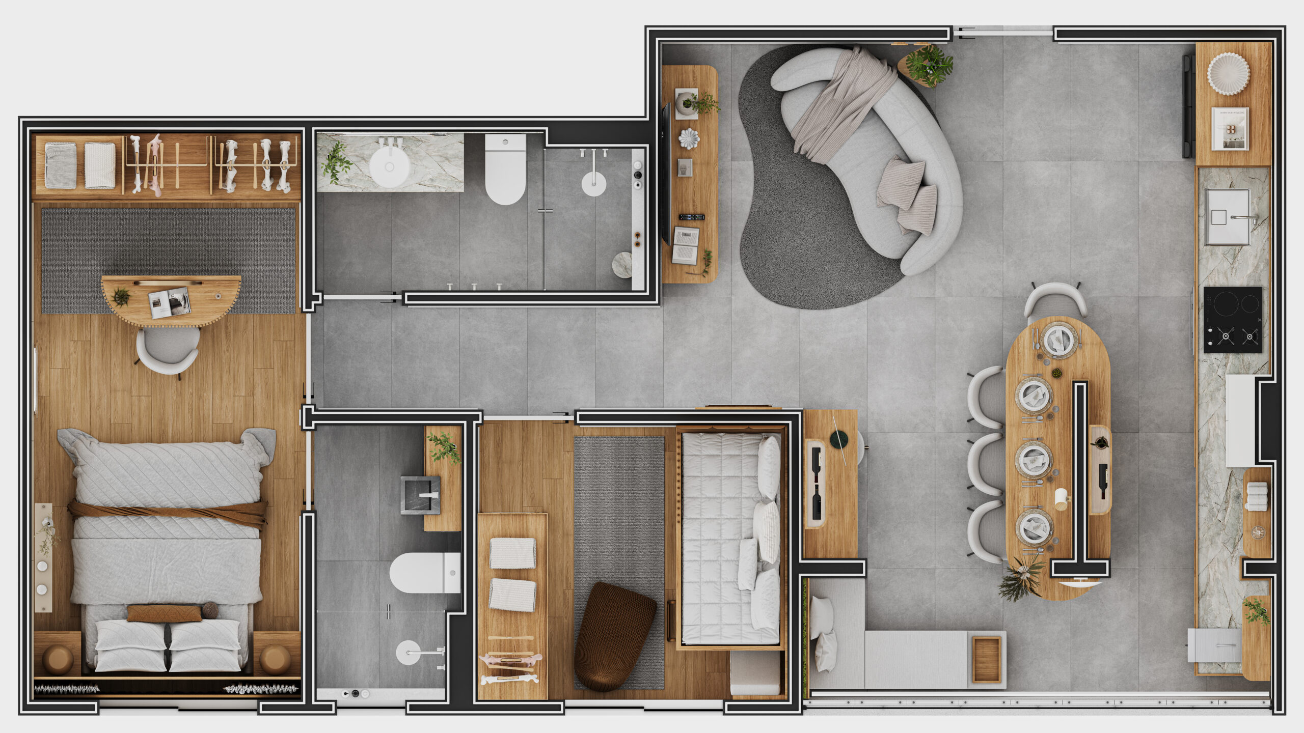 Aqui, a vida acontece com mais cor, mais sorrisos e mais praticidade. Um projeto que entende que você quer relaxar na piscina, encontrar os amigos para um churrasco, cuidar do corpo na academia e ainda ter espaços para o trabalho e para a diversão das crianças e dos pets.